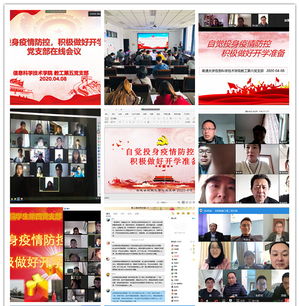 近日,学院党委17个党支部分别以“自觉投身疫情防控,积极做好开学准备”为主题召开党日活动,传达省市和学校的防疫要求,围绕学校疫情防控工作会议、新学期学生工作会议等精神,学习抗“疫”斗争中奋勇当先的党员先进事迹,研讨如何做好开学准备工作,在防疫的同时平稳有序地开展教学科研学习等日常工作。