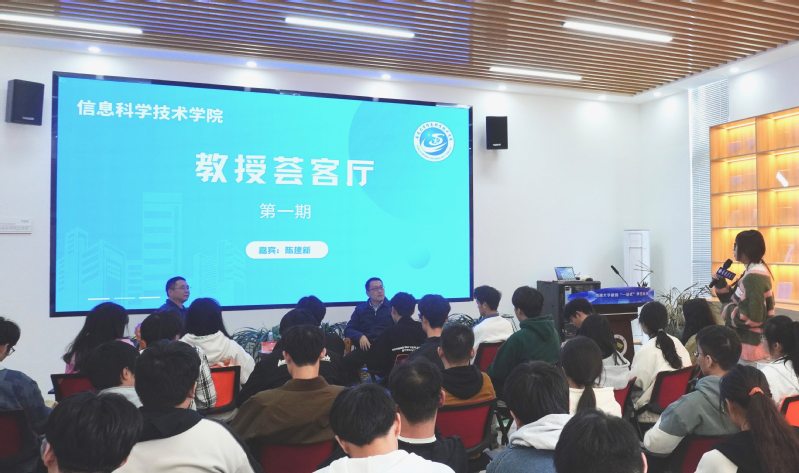 为充分发挥教授示范引领作用,更好地推动师生之间的交流互动,提升同学们的科研视野,4月10日下午,6776永利集团在融园“一站式”学生社区举办第一期“教授荟客厅”活动,邀请学院二级教授陈建新为同学们答疑解惑。学院党委副书记、副院长陈馥强主持此次活动。