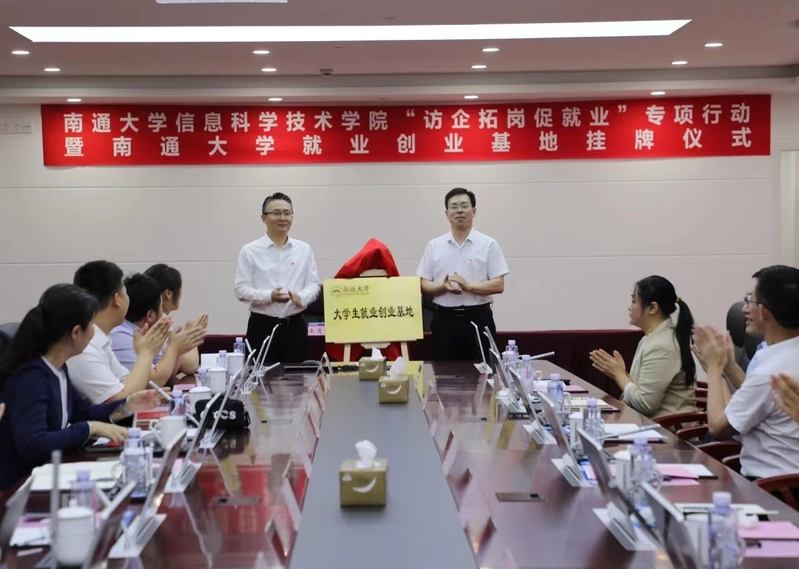为深化校企合作,推动毕业生高质量充分就业, 6月1日下午,校党委常委、副校长施佺带队赴中国电信南通分公司开展“访企拓岗促就业”专项行动。中国电信南通分公司党委委员、副总经理俞冬辉接待了施佺一行,并共同为yl6776永利集团大学生就业创业基地揭牌。
