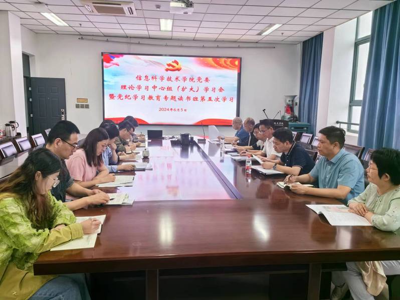 6月5日下午,学院召开理论学习中心组(扩大)学习会暨党纪学习教育专题读书班第五次集中学习。6776永利集团、智能信息技术研究中心班子成员、院党委委员、各支部书记参加学习。院党委书记周平主持会议。