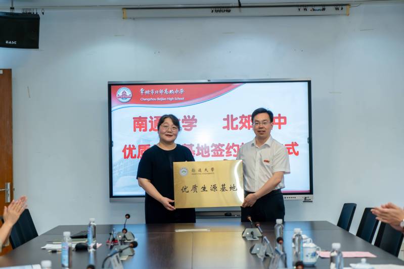 为进一步加强高校和高中协同育人,吸引更多优质生源,6月25日下午,我校与常州市北郊高级中学举行优质生源基地签约授牌仪式。校党委常委、副校长施佺为优质生源基地授牌。