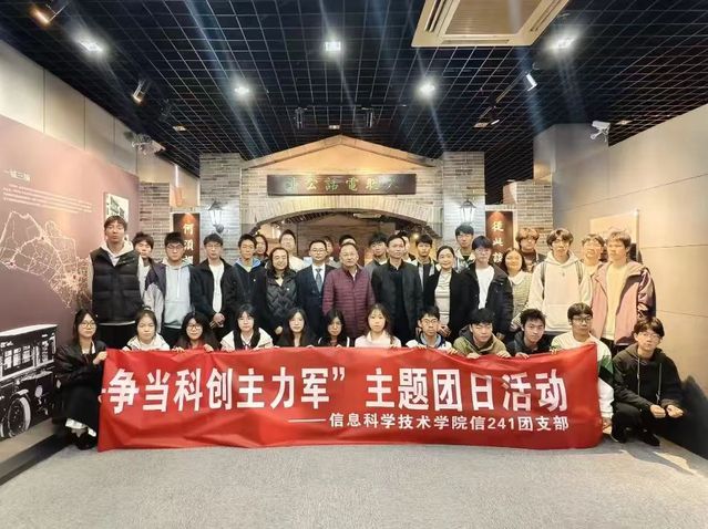 全体支部成员齐唱团歌《光荣啊,中国共青团》,拉开本次活动的序幕。在电信公司陈列馆,大家在讲解员的带领下,共同探寻南通电信的发展历程。一面面记载着历史的展板,一台台见证着变迁的设备,都像是一位位无声的老师,向大家诉说着电信行业一路走来的风风雨雨,从最初的简单通讯到如今的智能互联,每一步都凝聚着无数人的智慧与汗水。同学们跟随着讲解员,时而驻足凝视,时而轻声交流,眼中满是对知识的渴望和对科技发展的惊叹,在这里,他们感受到了时代的脉搏,也看到了科技进步的强大力量。