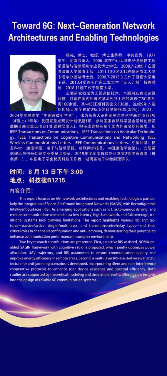 讲座预告:Toward 6G: Next-Generation Network Architectures and Enabling Technologies