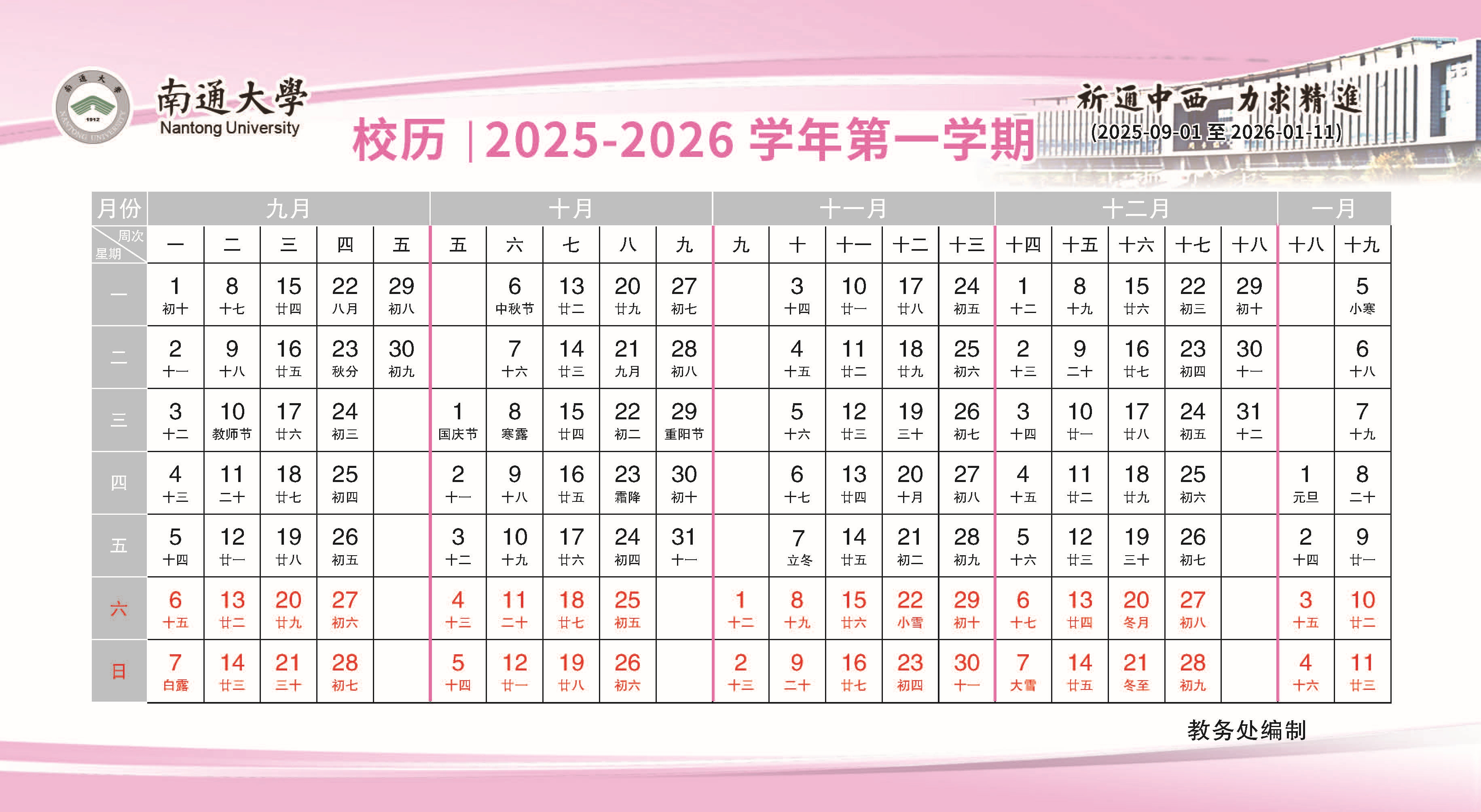 2025-2026学年第一学期校历