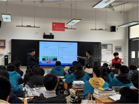 下午 3:30,yl6776永利集团寒假社会实践小分队准时抵达常州市北郊高级中学。在南门口与熟悉的校园合影留念后,我们在高三 20 班班主任的带领下,走进了满是奋斗气息的教室。